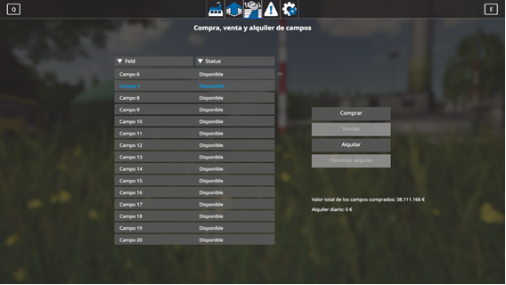 Desde el gestor de terrenos (pulsando las teclas CRTL IZQ y G) tienes la posibilidad de alquilar terrenos en el mapa, o incluso comprarlos y alquilarlos a otras granjas para que te den un beneficio.